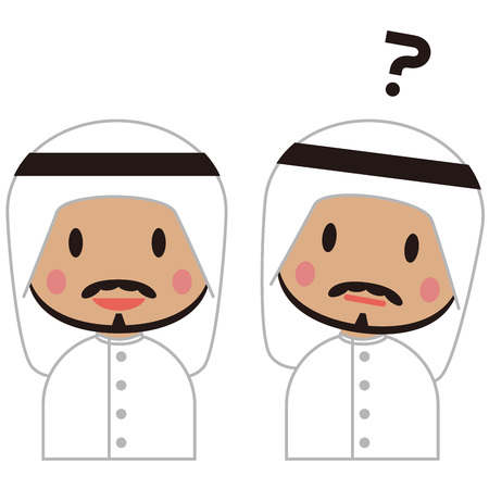 かわいい中東男性笑顔と疑問のイラスト素材 ベクタ Image